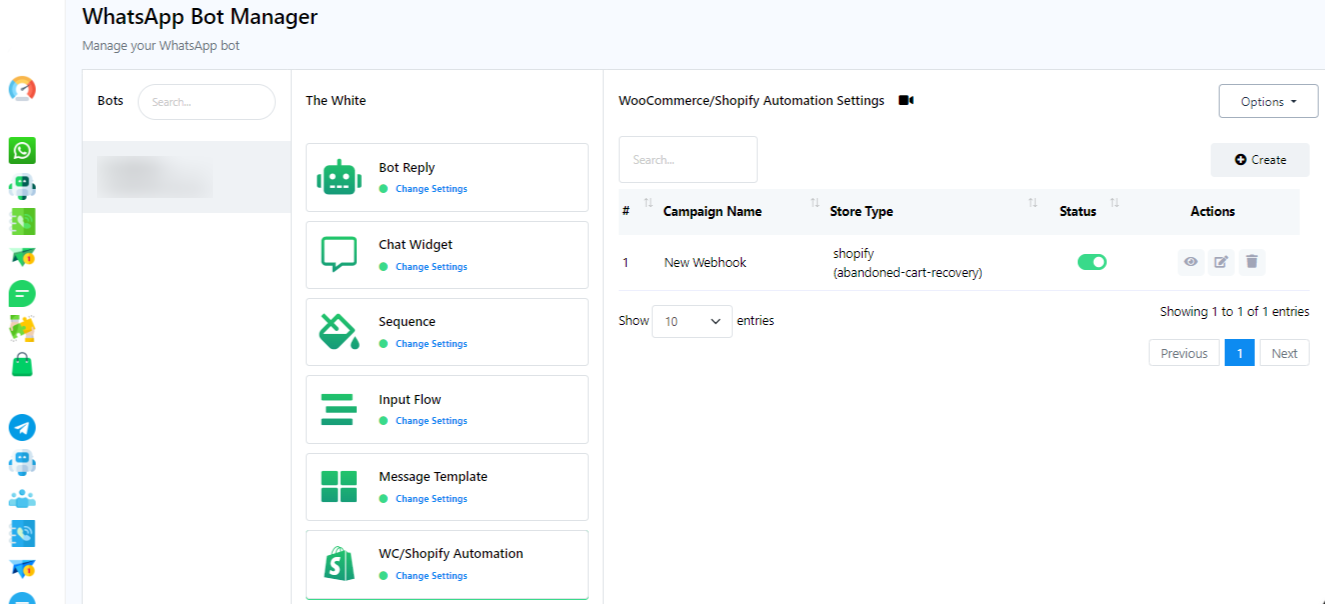 - Access the WooCommerce and Shopify Automation section in hpdsbot.io.